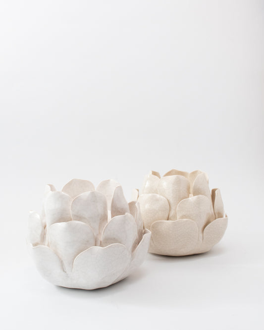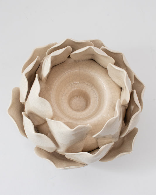 Kerzenhalter / Teelichthalter - Blume mit Blättern - Creme/Natur