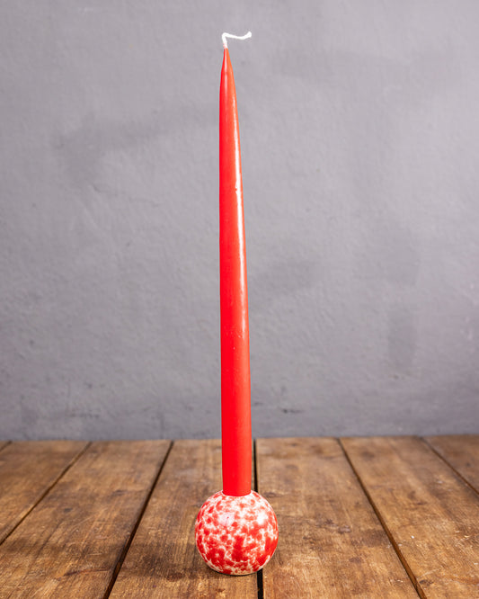 Marmorierter Kugel-Kerzenhalter (Rot/Weiß)