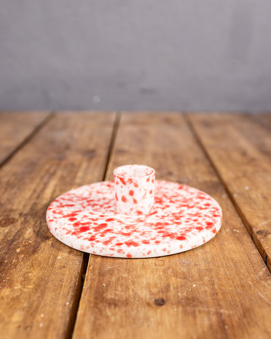 Runder Porzellan-Kerzenhalter (Rot/Weiß Marmoriert)