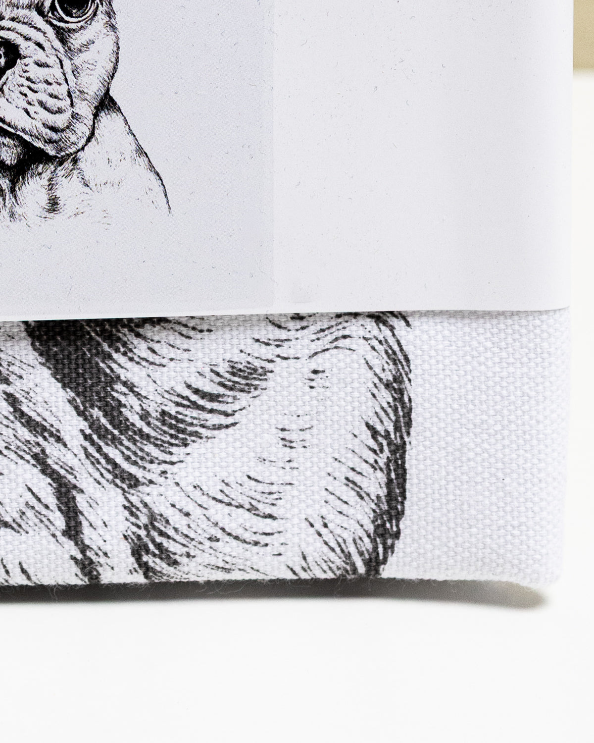 Weißes Geschirrtuch mit schwarzer Zeichnung einem Hund - Siebdruck.