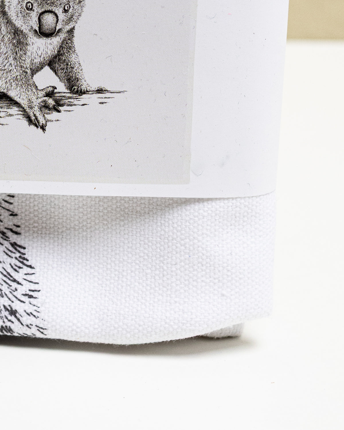 Weißes Geschirrtuch mit scharzer "Koala" Zeichnung - Siebdruck.