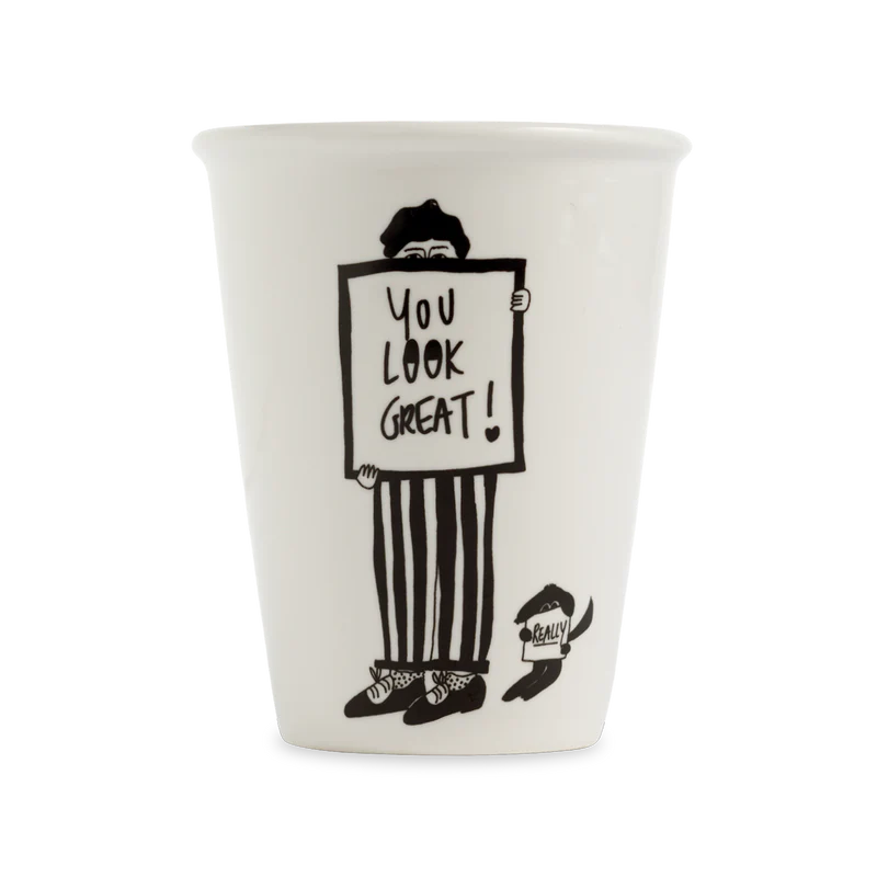 Becher aus Porzellan mit helen b Illustration "you look great team"