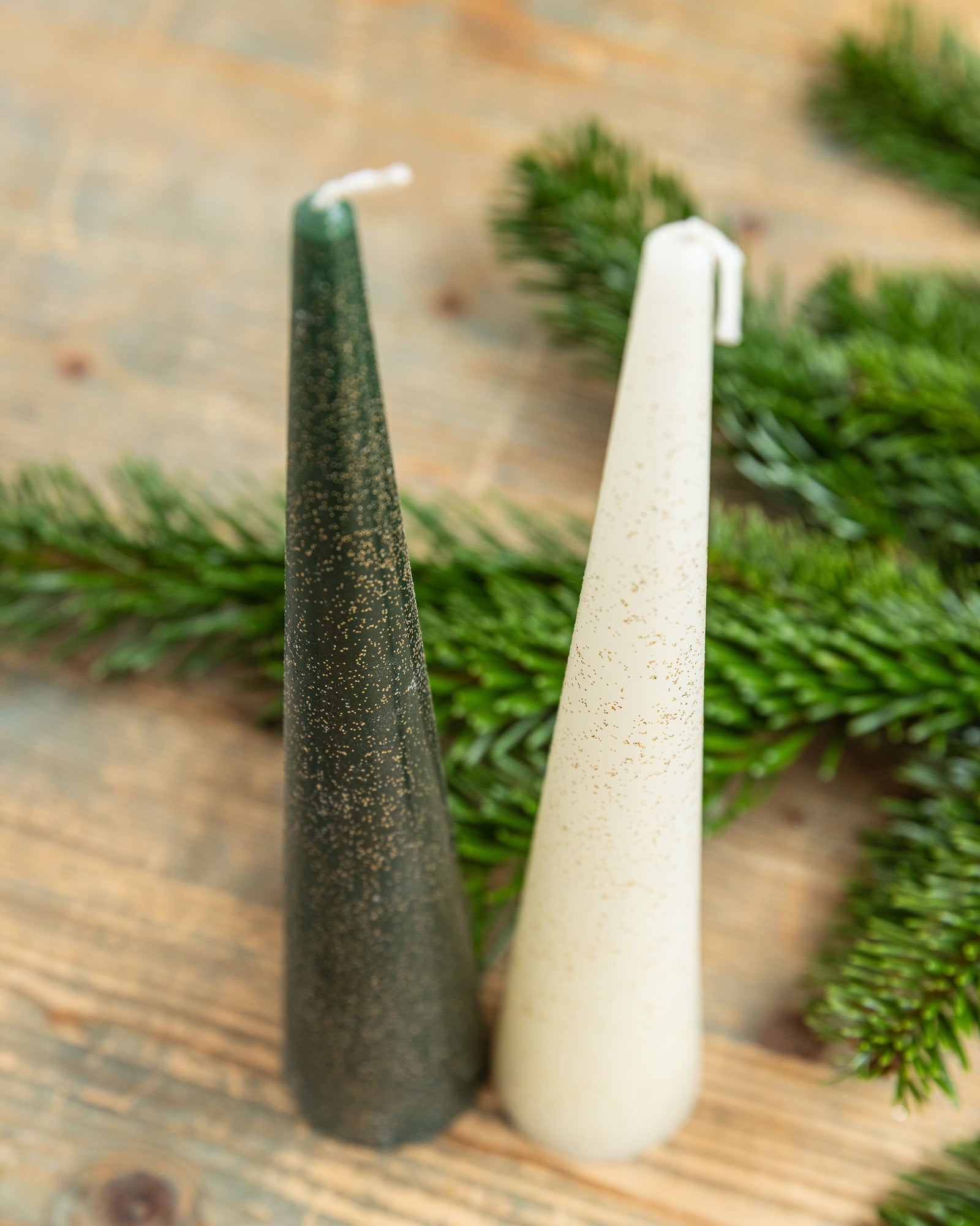 Kegel-Kerze mit Glitzer - grün