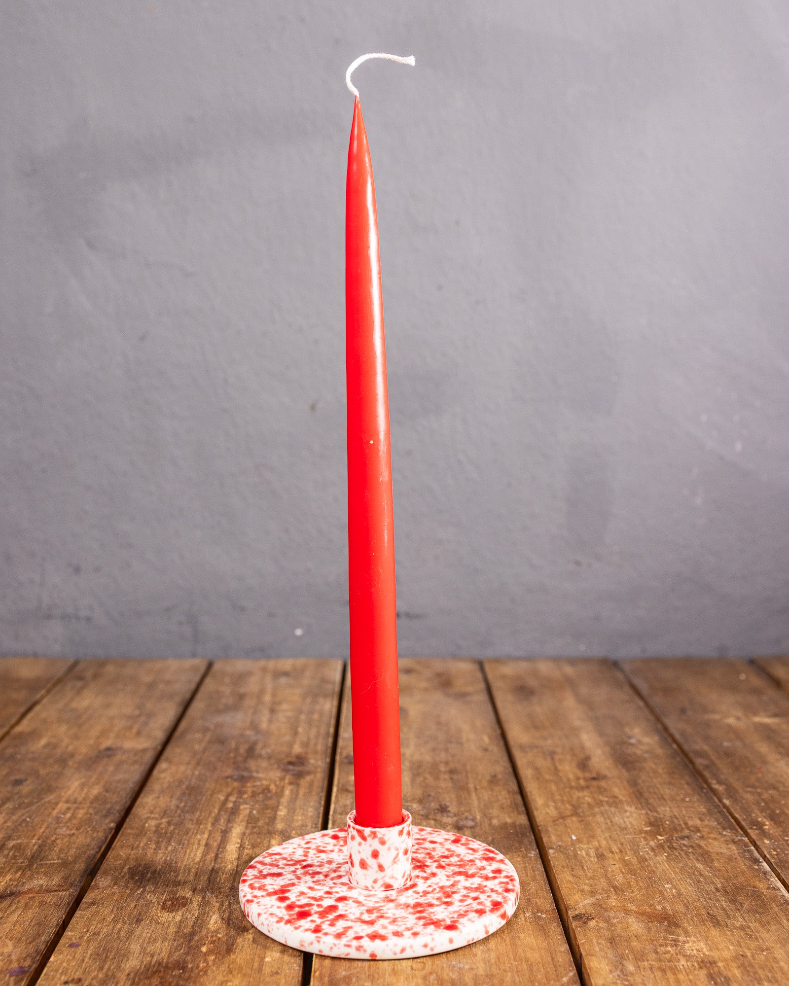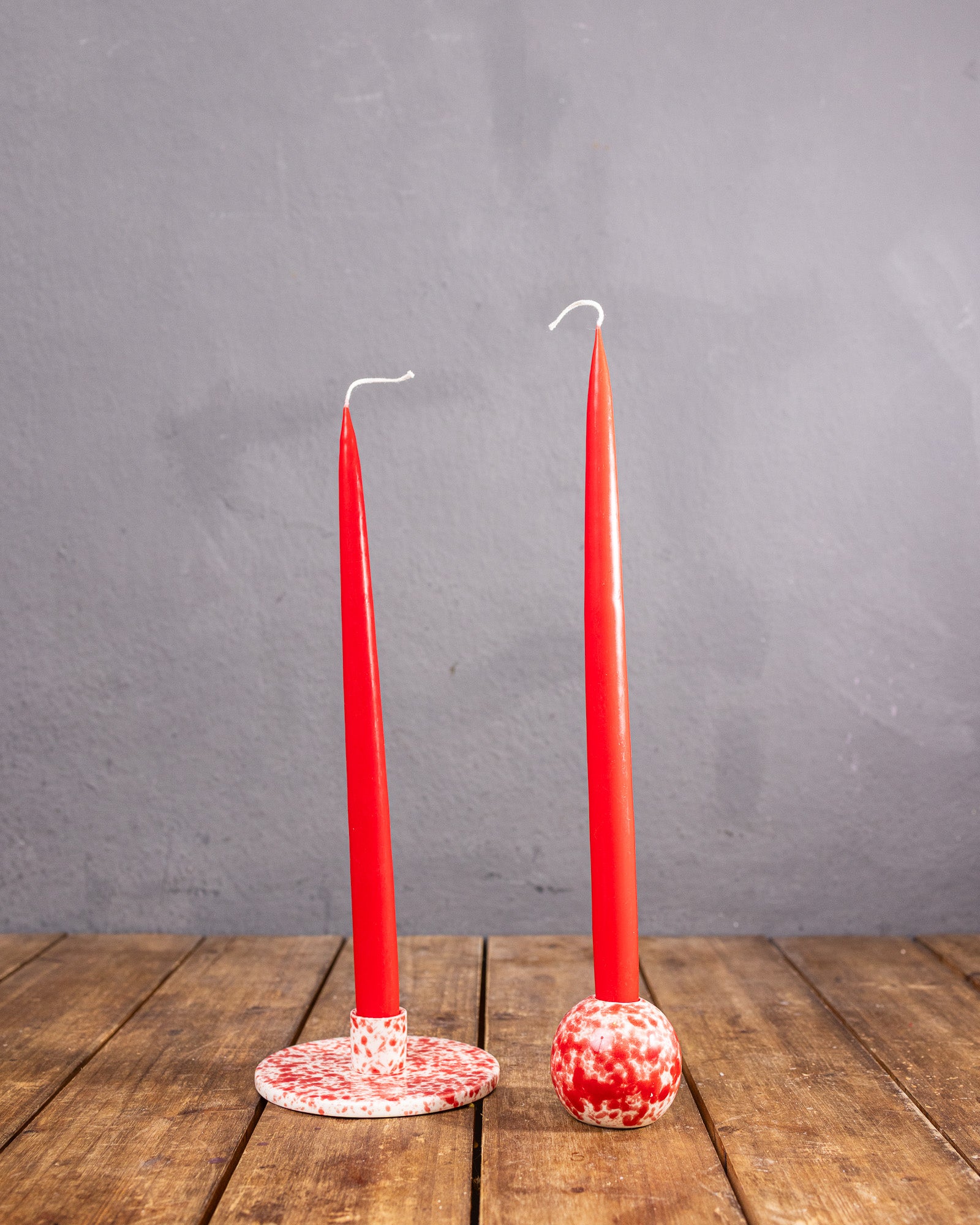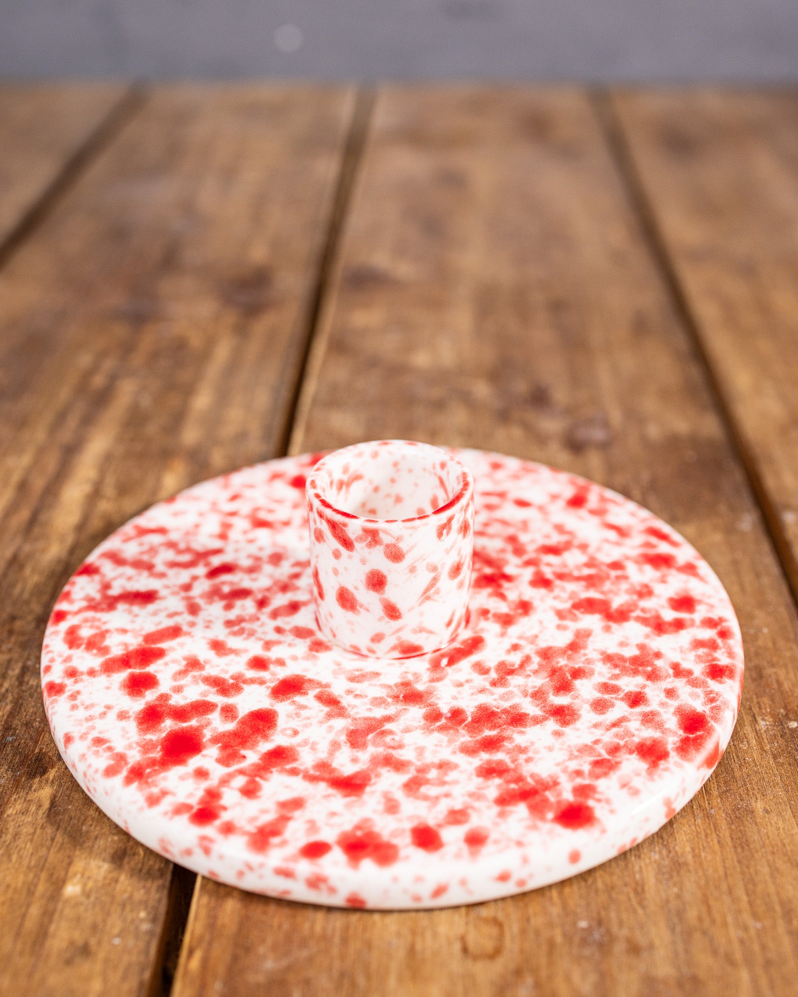 Runder Porzellan-Kerzenhalter (Rot/Weiß Marmoriert)