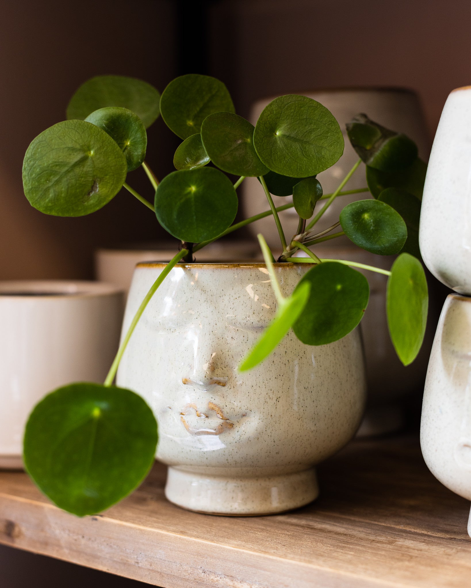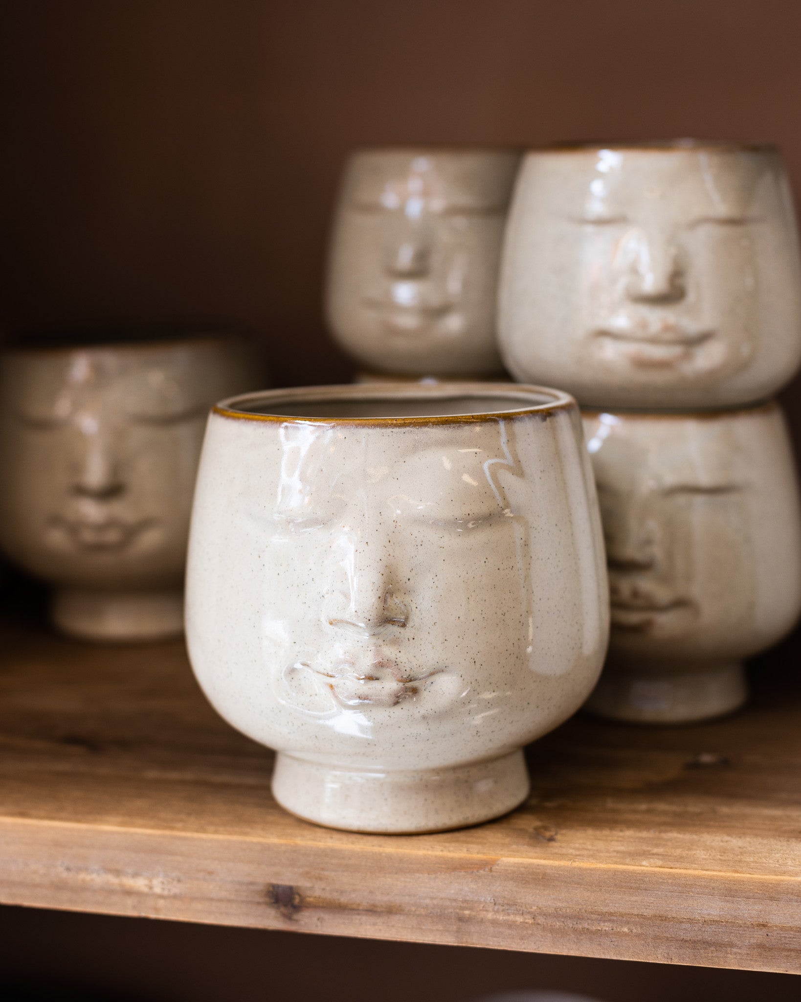 Ein freundlicher Übertopf mit einem zarten Lächeln.